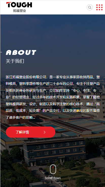浙江拓福塑業股份有限公司,是一家專業從事家居收納用品、塑料模具、塑料零部件等生產近二十余年的公司,專注于注塑產品及相關延伸業務研發與生產,公司始終堅持“專心、專注、專業”的經營理念,經過多年的技術開發和實踐積累,掌握了精密塑料模具研發、設計、制造以及科學注塑的核心技術,通過“高品質、低成本、短交期”的產品交付,以及快速響應的服務贏得了諸多客戶的信賴。